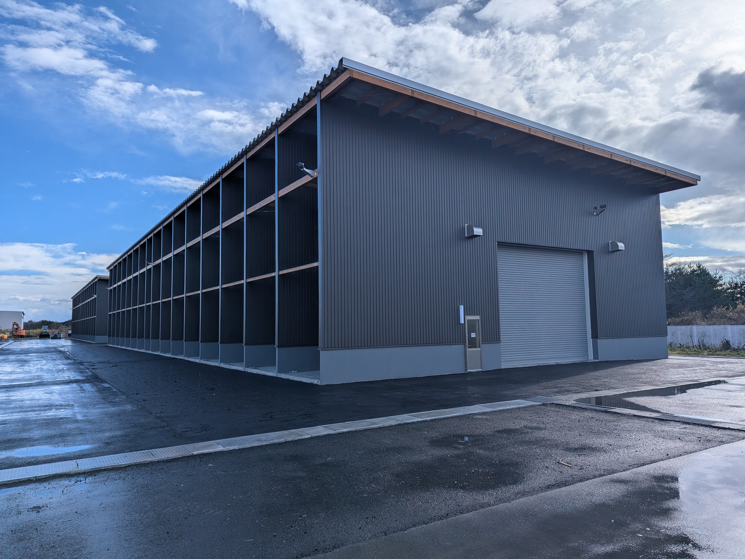 本建物は、多雪地域に建設された倉庫用途の木造建築であり、施工床面積1,160.78㎡、最高高さ9.517mの大空間を有する計画です。